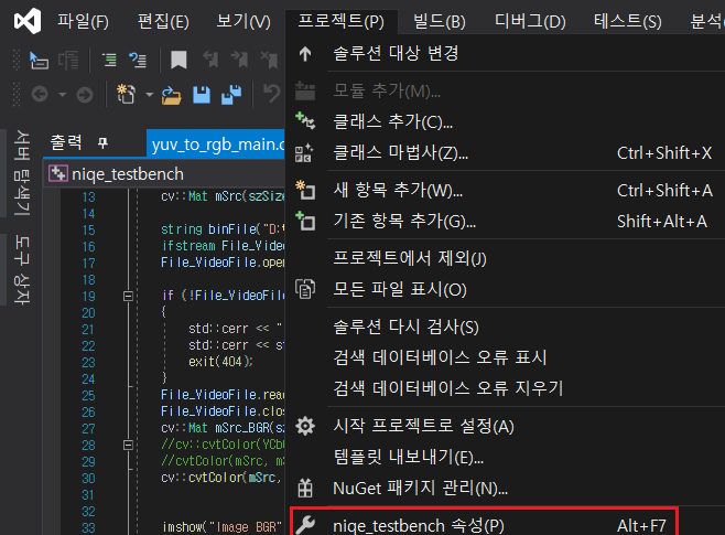 프로젝트 >> 프로젝트 속성으로 들어가줍니다.