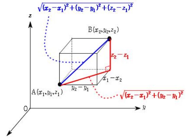 아래 그림의 파란색 글씨로 보이는 3차원에서의 거리 공식을 코드로 구현할 것입니다.