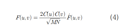 과정2에서 얻은 블록에 대해 DCT를 수행할 수 있다, DCT 연산식은 수식4와 같고 Dct Class의 Transform 함수를 호출함으로서 계산이 이뤄진다.