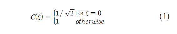 수식 1은 상수 C가 어떻게 결정되는지 보여준다. 상수 C는 수식4 DCT 과정과 수식3 IDCT 과정에 사용되고 Dct Class에서는 float ConstC(int) 함수로 구현되어 있다.